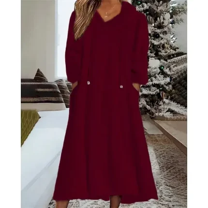 Women’s Midi Dress Casual Dress Winter Dress Fashion Modern Daily Weekend Regular Fit Plain Long Sleeve Hooded Wine Winter Autumn