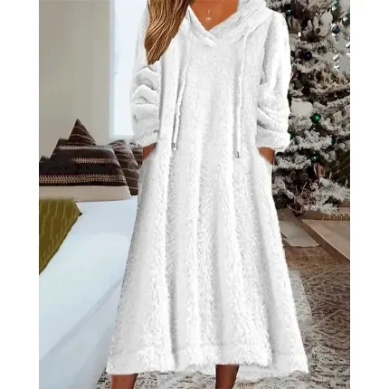 Women’s Midi Dress Casual Dress Winter Dress Fashion Modern Daily Weekend Regular Fit Plain Long Sleeve Hooded White Winter Autumn