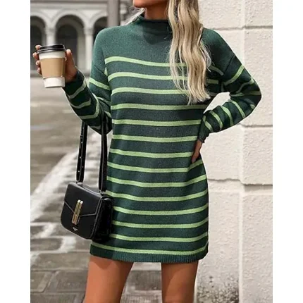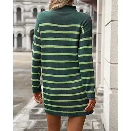 Women’s Sweater Dress Casual Striped Mock Neck Print Long Sleeve Regular Tops Knit Work Daily White / Black Green Fall Winter