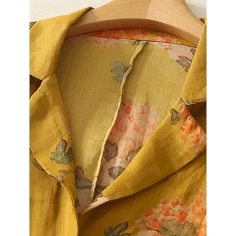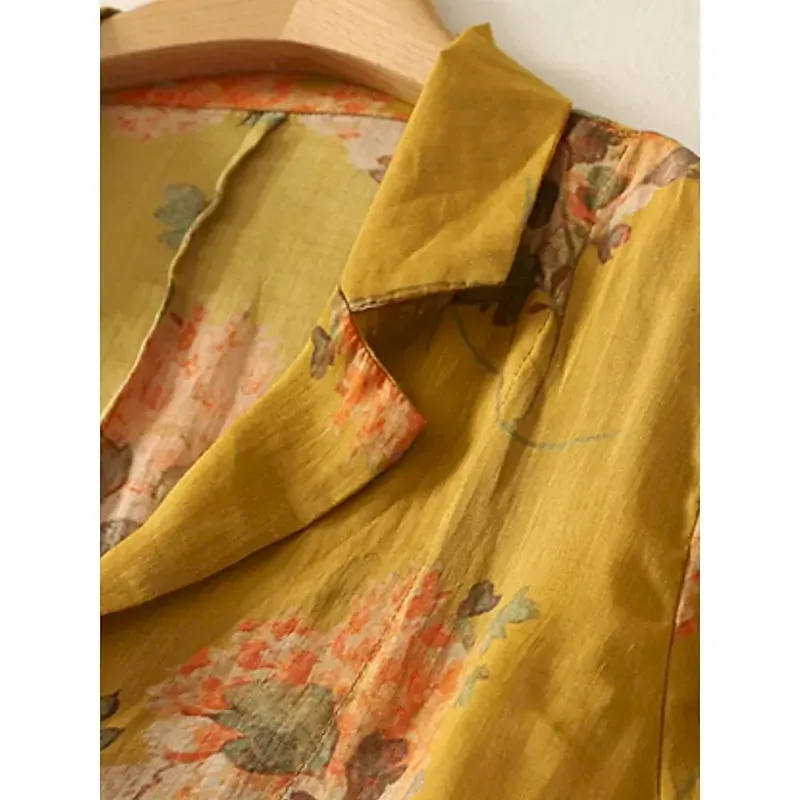 Women’s Blazer Comfortable Breathable Pocket Print Vintage Casual Floral Office Street Casual Daily Wear Single Breasted Regular Turndown Regular Fit Long Sleeve Outerwear Yellow Summer Spring