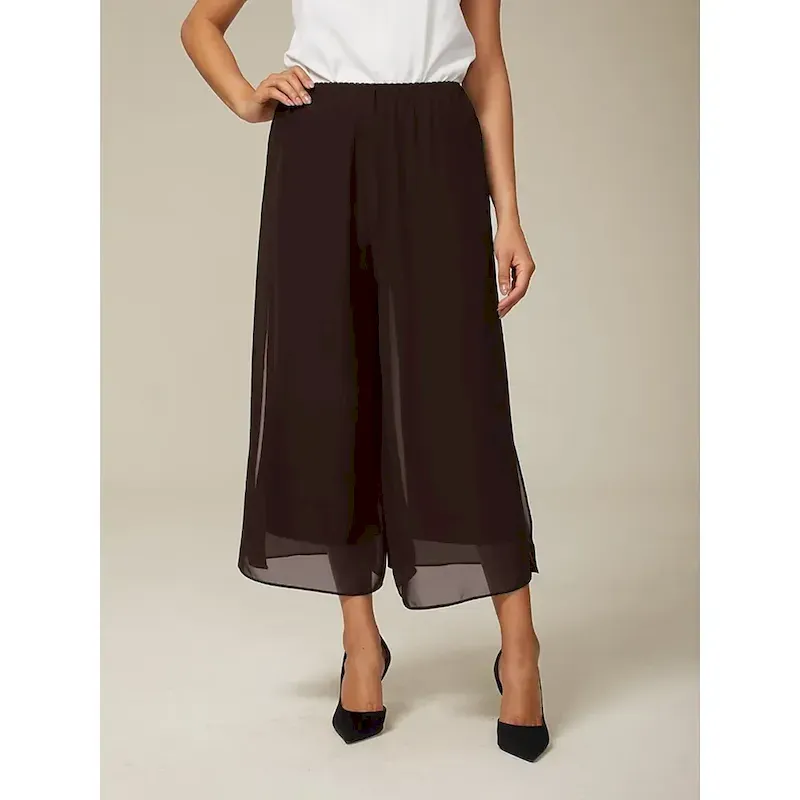 Women’s Culottes Wide Leg Vacation Classic Calf-Length Mid Waist Elastic Waist Stylish Fashion Stretchy Formal Office Dailywear Brown Summer Spring Fall