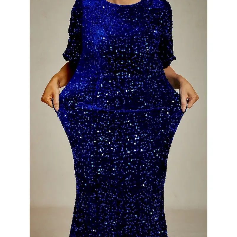 Women’s Maxi Dress Sheath Dress A Line Dress Puff Sleeve Dress Party Birthday Party Regular Fit Solid Color Short Sleeve Crew Neck Royal Blue Spring Fall Winter