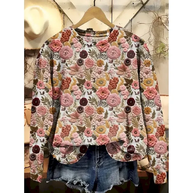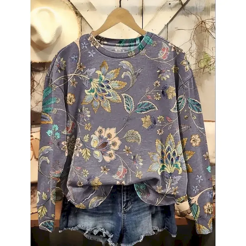 Women’s Pullover Sweatshirt Floral Graphic Warm Active Vintage Long Sleeve Crew Neck Regular Tops Street Dailywear Casual Print Black Red Blue Purple Orange Spring Fall Winter