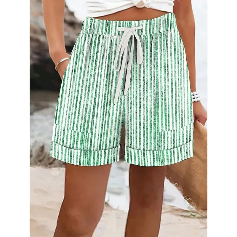 Women’s Shorts Chinos Vacation Basic Casual Short Mid Waist Striped Elastic Waist Vacation Street Causal Ash Violet Robin’s Egg Blue Red Summer Spring Regular Fit