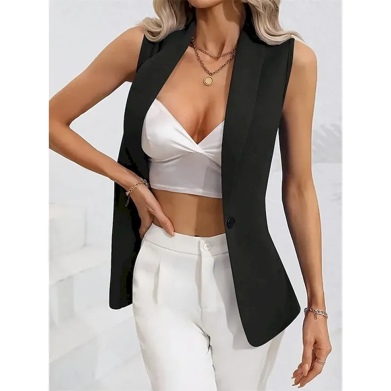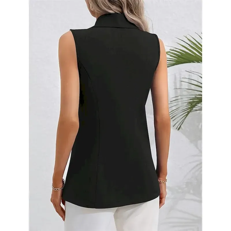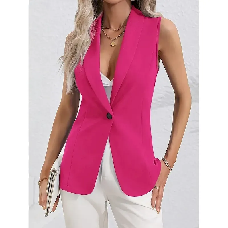 Women’s Vest Blazer Comfortable Breathable Pocket OL Style Modern Plain Formal Office Street Casual Single Breasted Regular Turndown Regular Fit Sleeveless Outerwear Black Pink Summer Spring